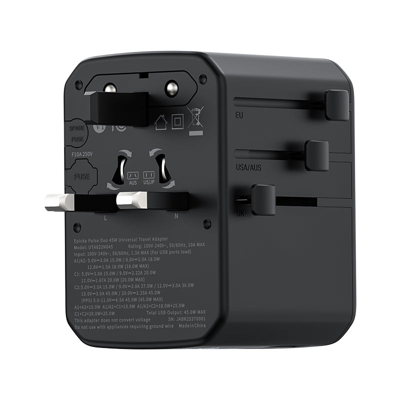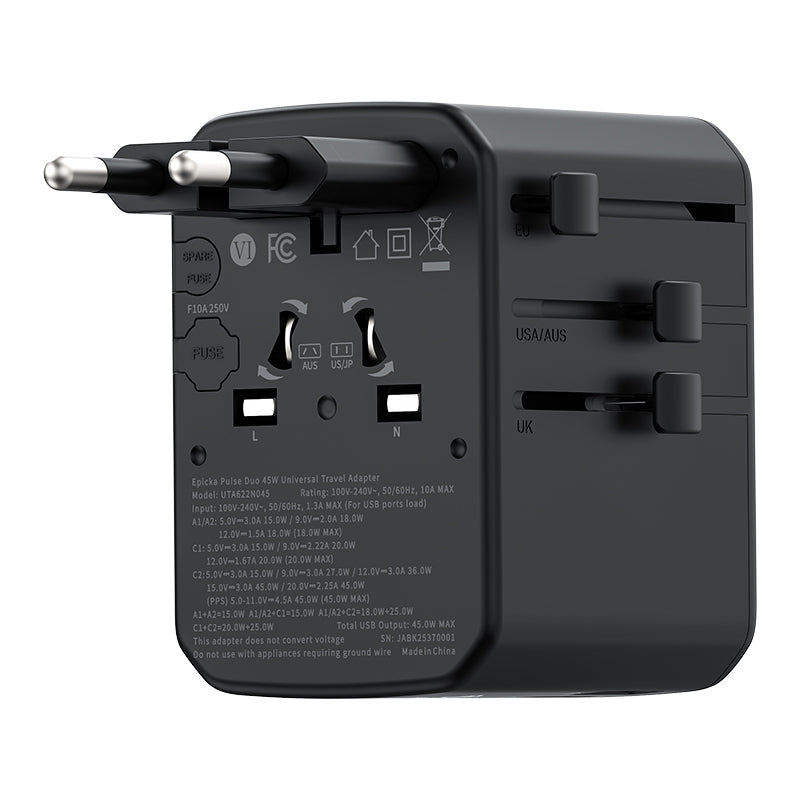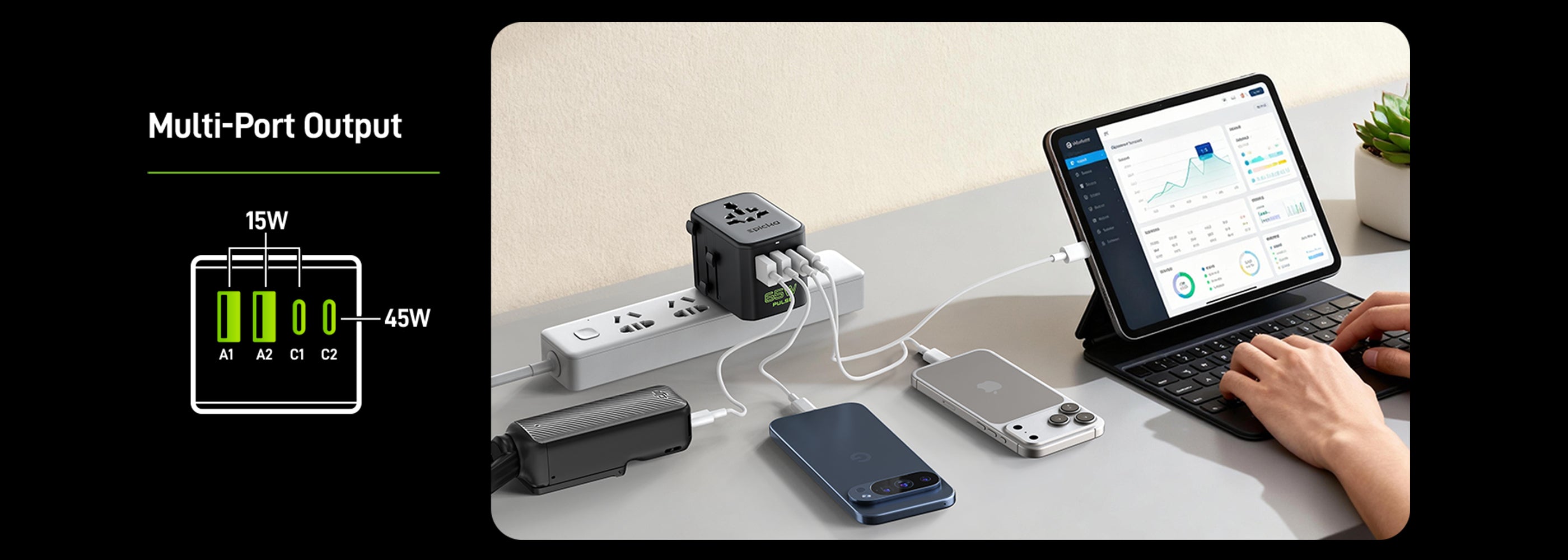 • Worldwide Compatibility: 4 plug types cover 200+ countries & regions (incompatible with Type D and Type M).