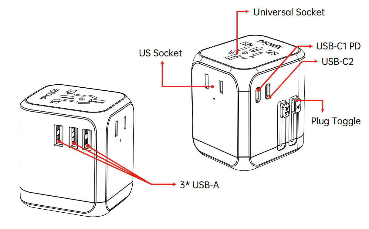 Warning: Our adapter is NOT a voltage converter or transformer. 220-240V voltages are highlighted in red, and you MUST make sure your device supports dual voltage (100-240V) before your trip. Epicka and all its related parties assume no liability for any damage, loss, or injury caused by using your device with an incompatible voltage through our adapter.