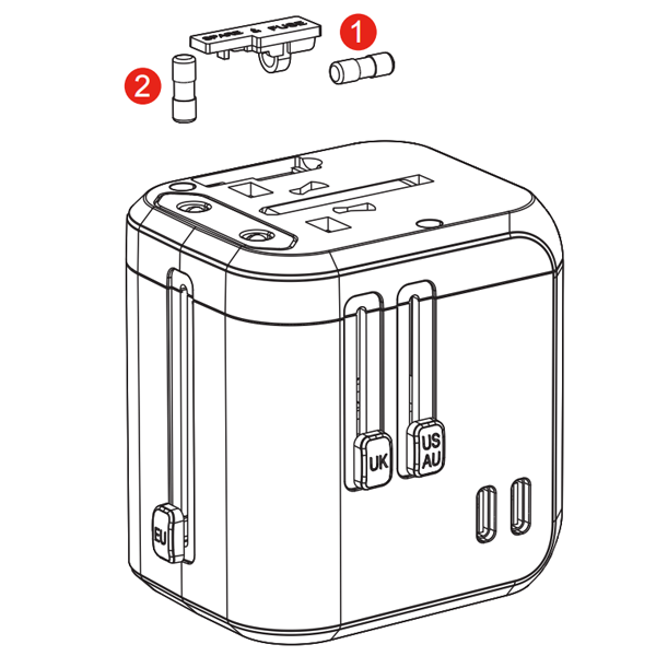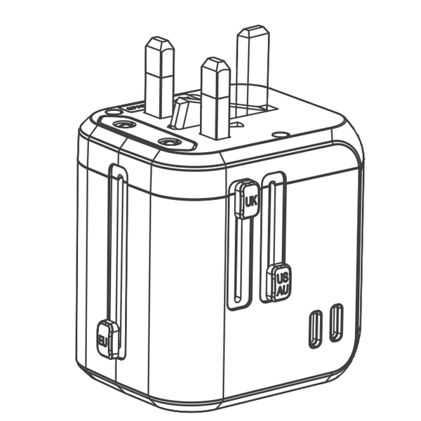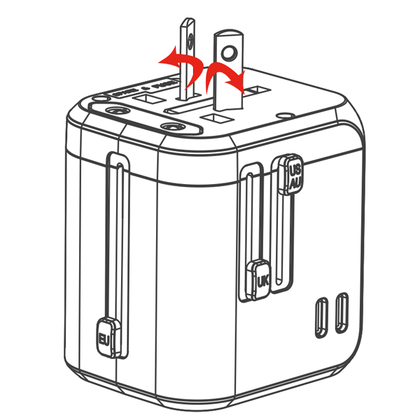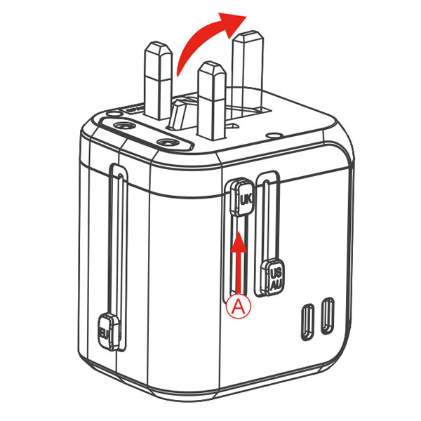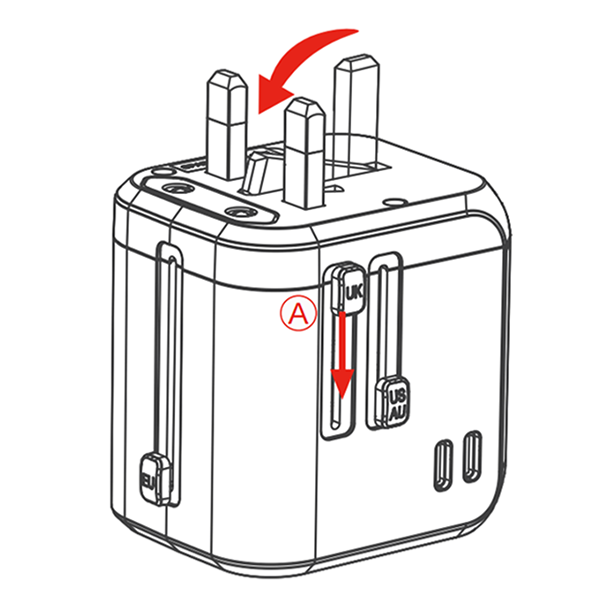 * When using the UK plug, you will need to manually lift up the insulated middle pin after pushing out the plug.
