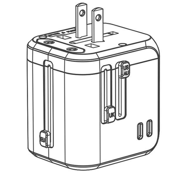 TA-105C adapter can accept Type A, B, C, E/F, G, I, J, L, N plugs from other countries.