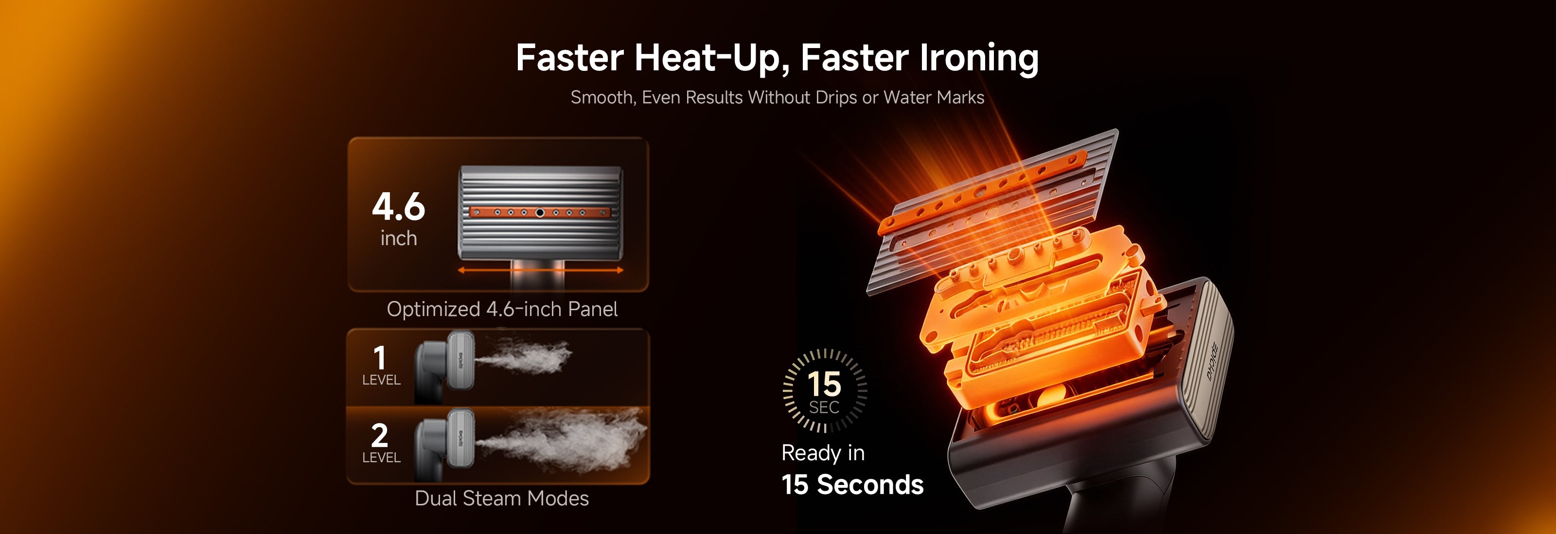 - Look Sharp in Seconds: 15-second fast heating gets you wrinkle-free and out the door faster.