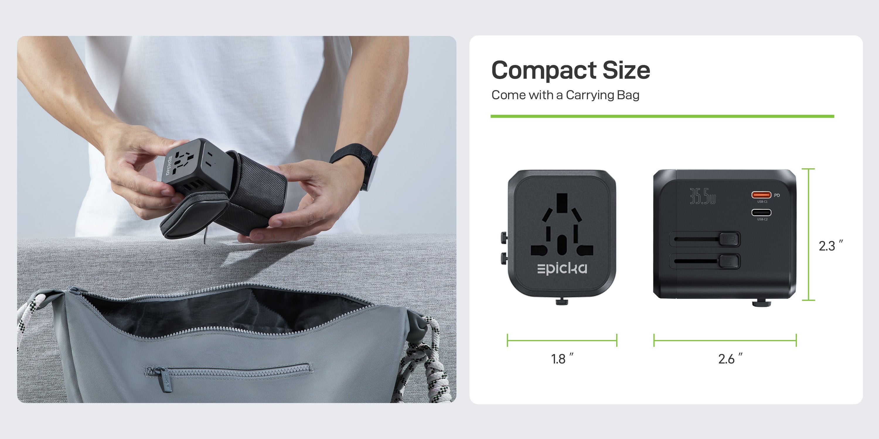 - 35W Fast Charging: With a surprisingly small size (2.3" x 1.8" x 2.6"). One of the USB-C supports PD3.0 and offers up to 35W fast charging.