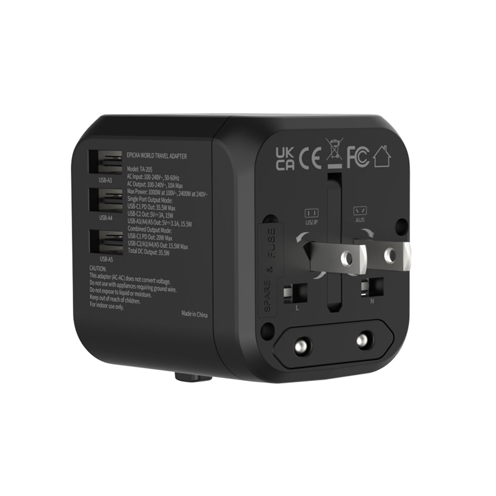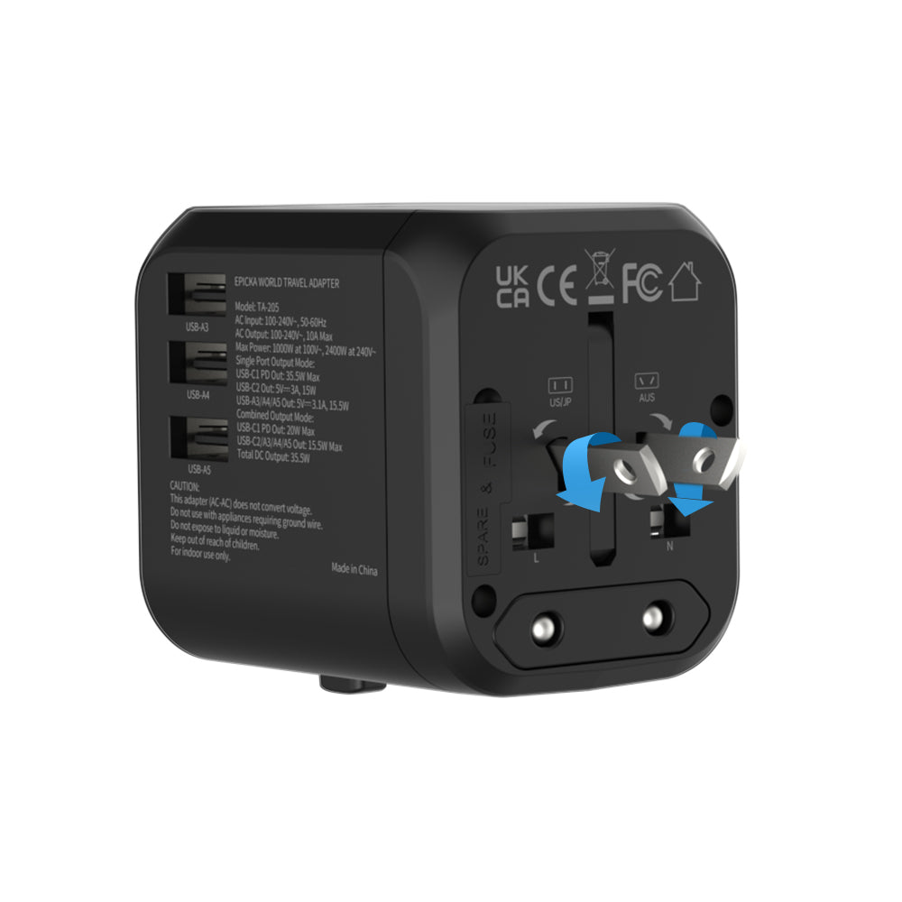 - Dual AC: Universal AC socket and US AC socket that adapt to 200+ countries & regions.