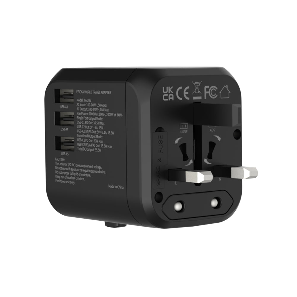 - Safety & Security: Cruise friendly. This travel adapter is equipped with a built-in 10A fuse, safety shutters and a plug lock system. In addition, it is certified by RoHS, CE, and FCC, ensuring its safety and reliability.