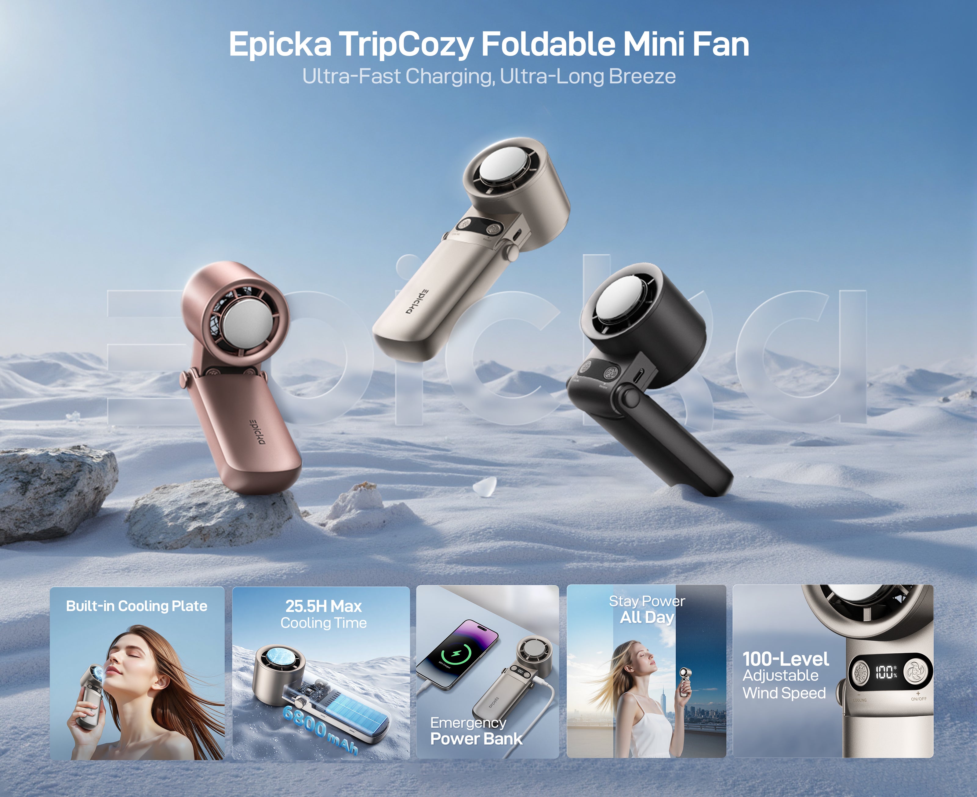 - Instant Ice-Cool Relief in 5 Seconds: Advanced semiconductor cooling plate + 12000 RPM motor = chills to 5.9°C in 5 seconds. Just press to skin for quick relief + strong 8m/s airflow.