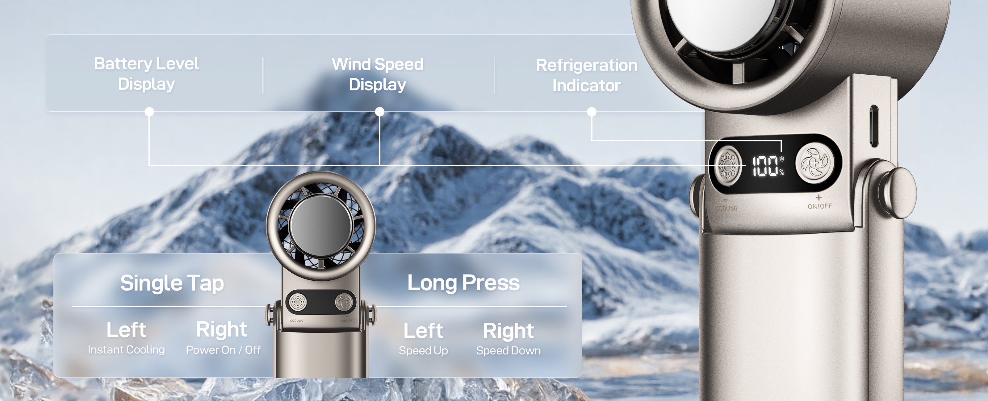 - Smart Display: Shows fan speed and exact battery level - always know when to charge.