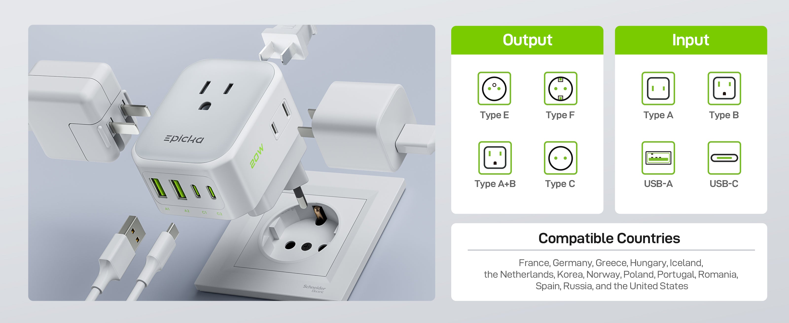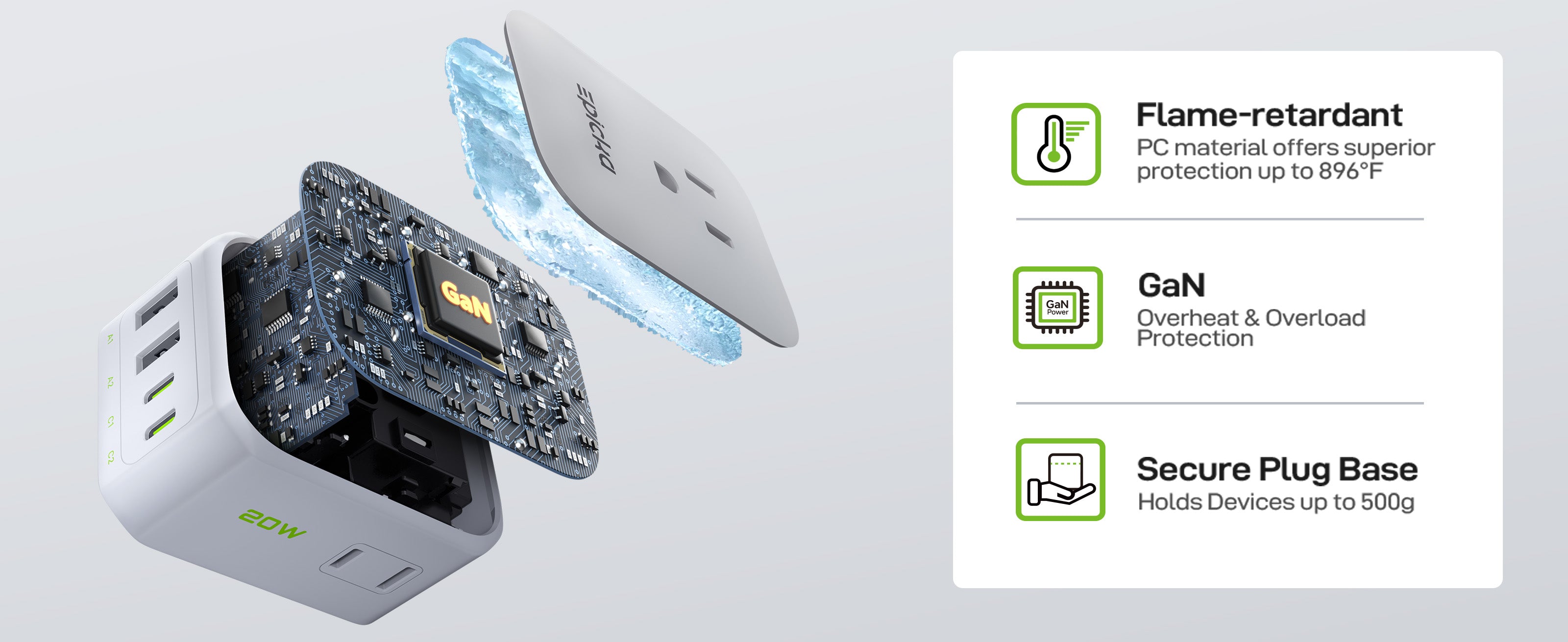 - Smart Layout & Foldable Design: Front-facing outlets avoid USB blocking; foldable US prongs make it perfect for travel.