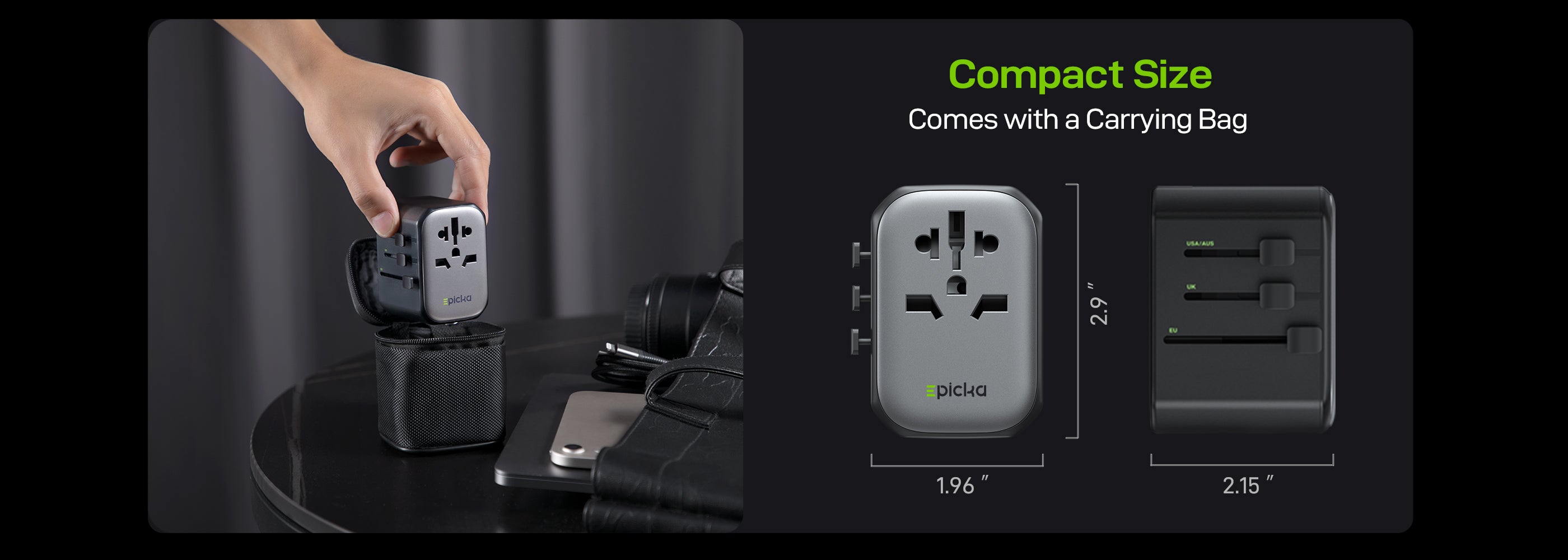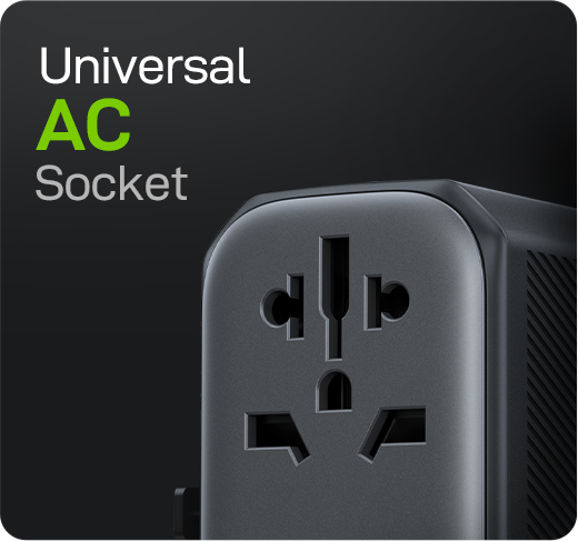 - Versatile AC outlet: Can adapt 11 types of plugs from other countries.