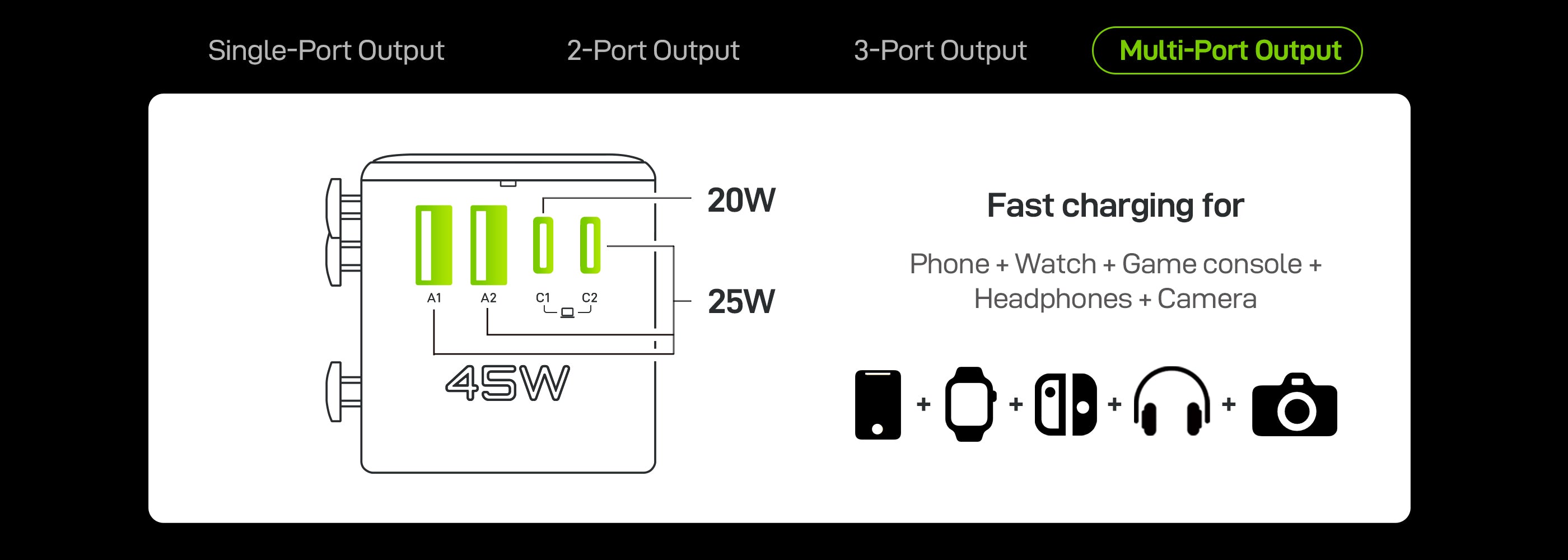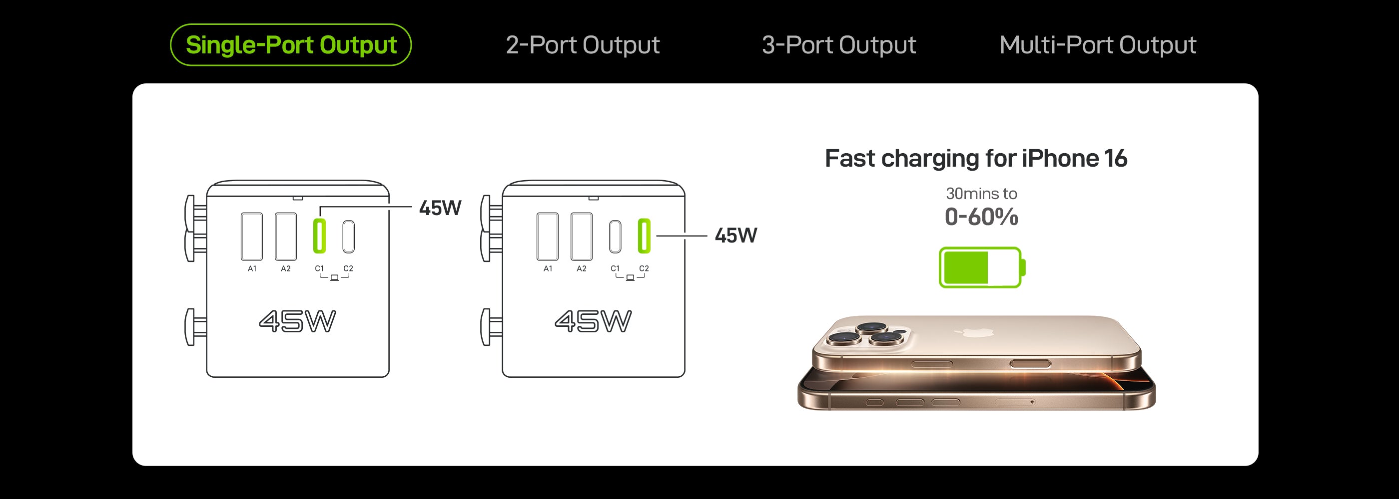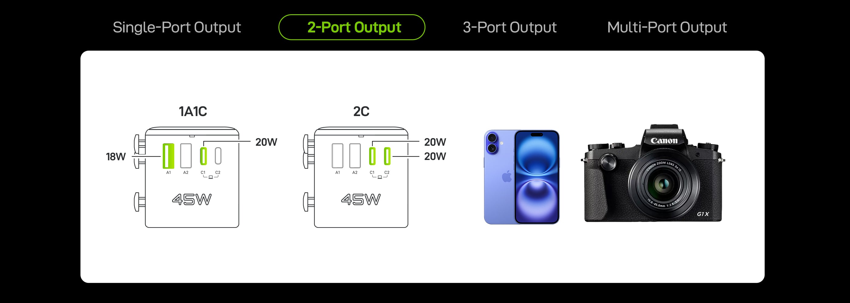 C2 Output: 5V⎓ 3A, 9V⎓ 3A, 12V⎓ 3A, 15V⎓ 3A, 20V⎓ 2.25A, 45W Max