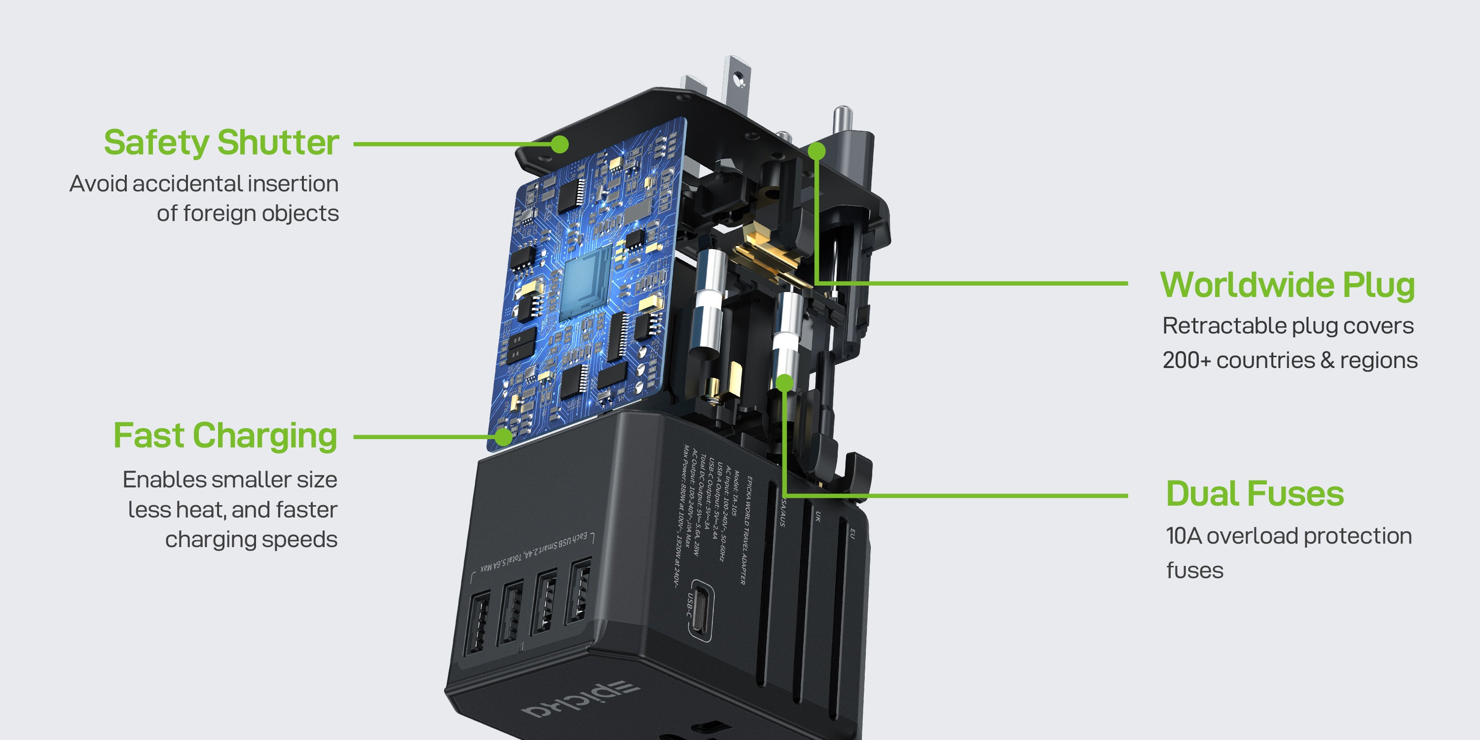 - Global Compatibility: All-in-one adapter includes 4 different plugs that adapt to 200+ countries & regions.