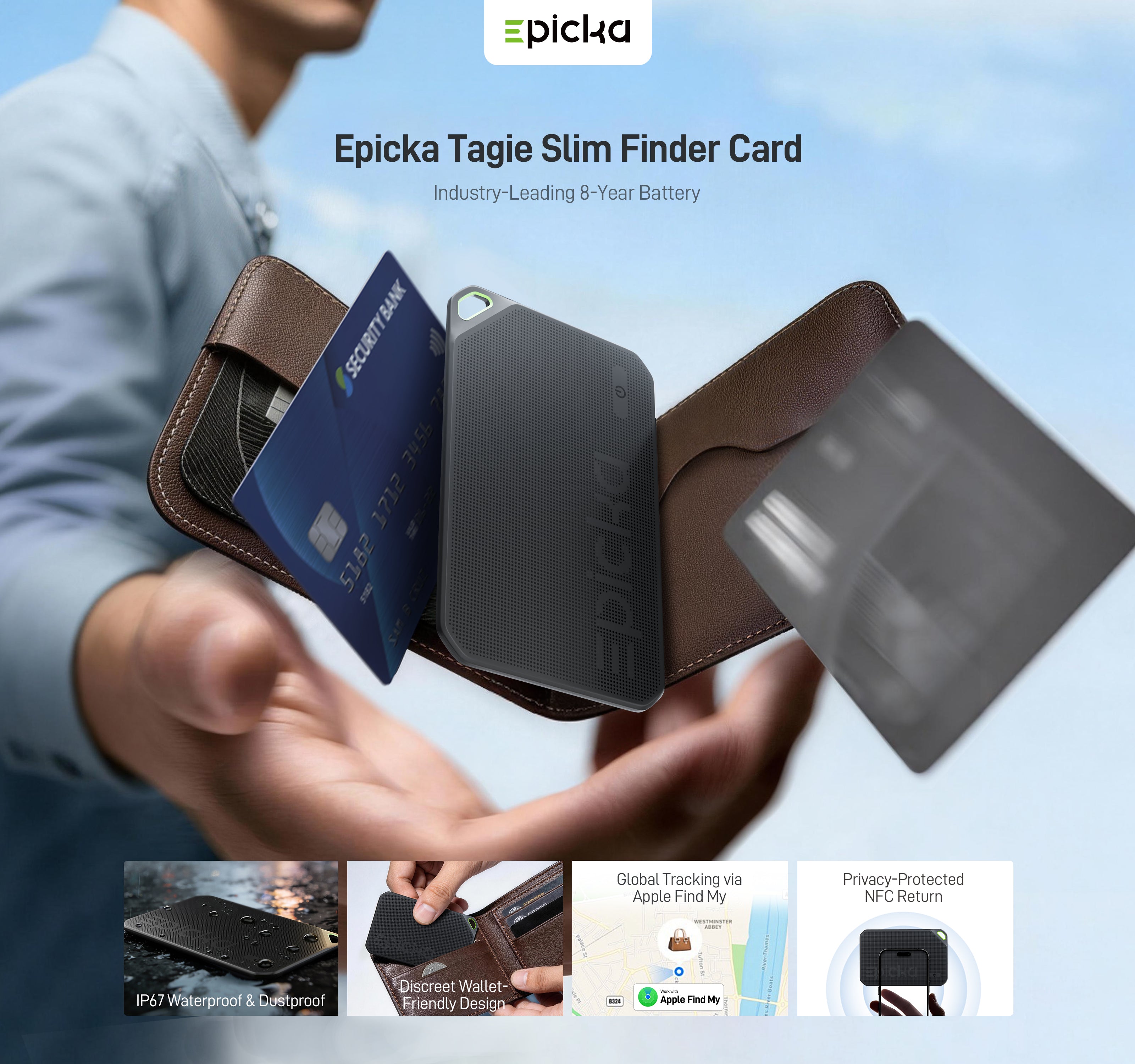 - Find My Certified — Play a sound & pinpoint your wallet's location instantly via Apple's Find My app. Officially MFi certified for full iOS compatibility.
