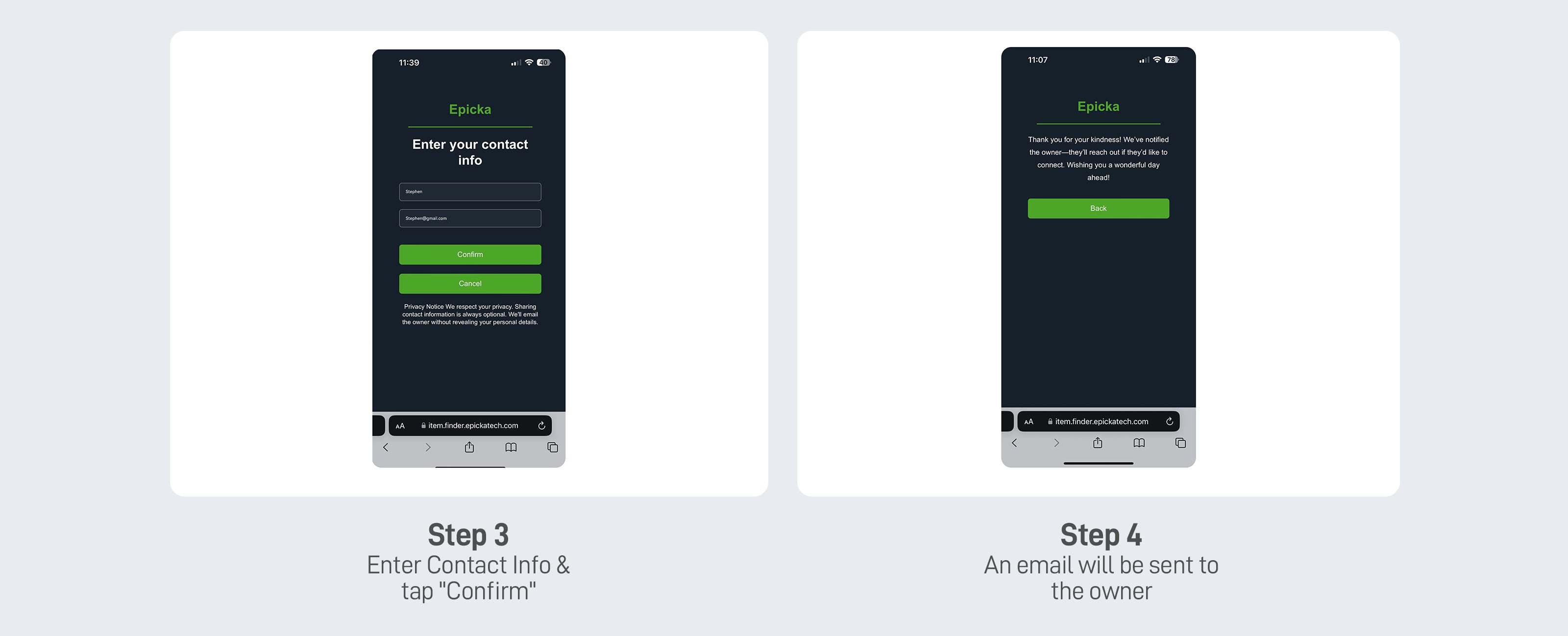 - NFC Tap-to-Return — Finders tap their phone to contact you instantly. No app needed. Your info stays private.
