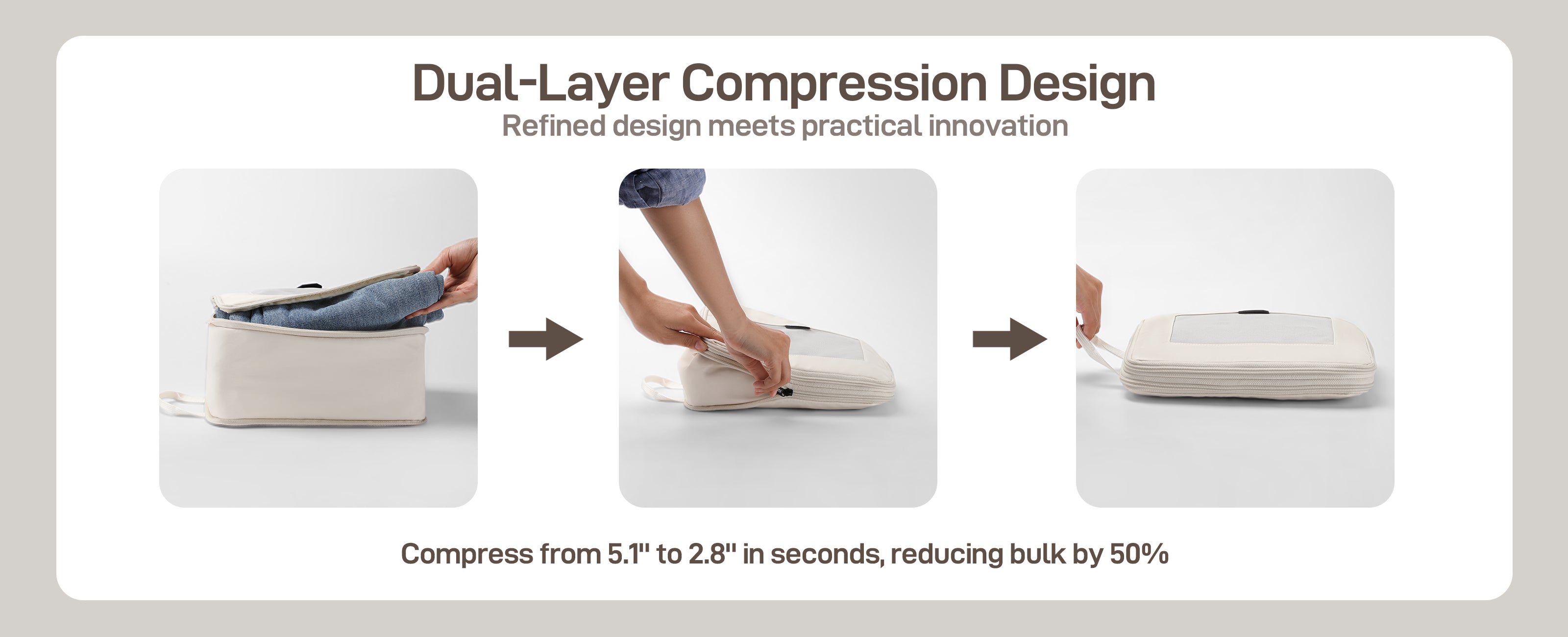 - Double-Layer Compression: Dual zippers compress clothing by up to 50%, maximizing suitcase space for bulky items like sweaters and jackets.