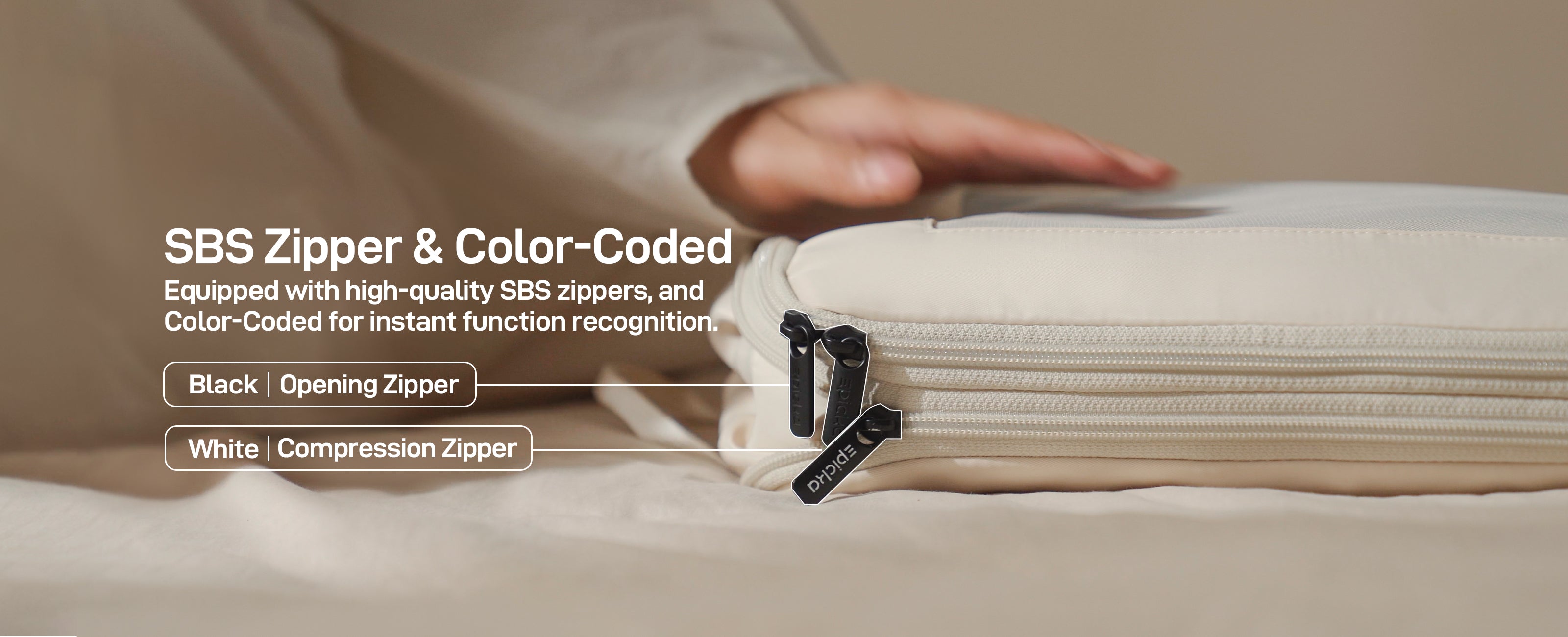 - Smooth SBS Zippers with Color Coding: Features suitcase-grade SBS zippers; black for everyday use, white for compression - prevents accidental opening and stays smooth over time.