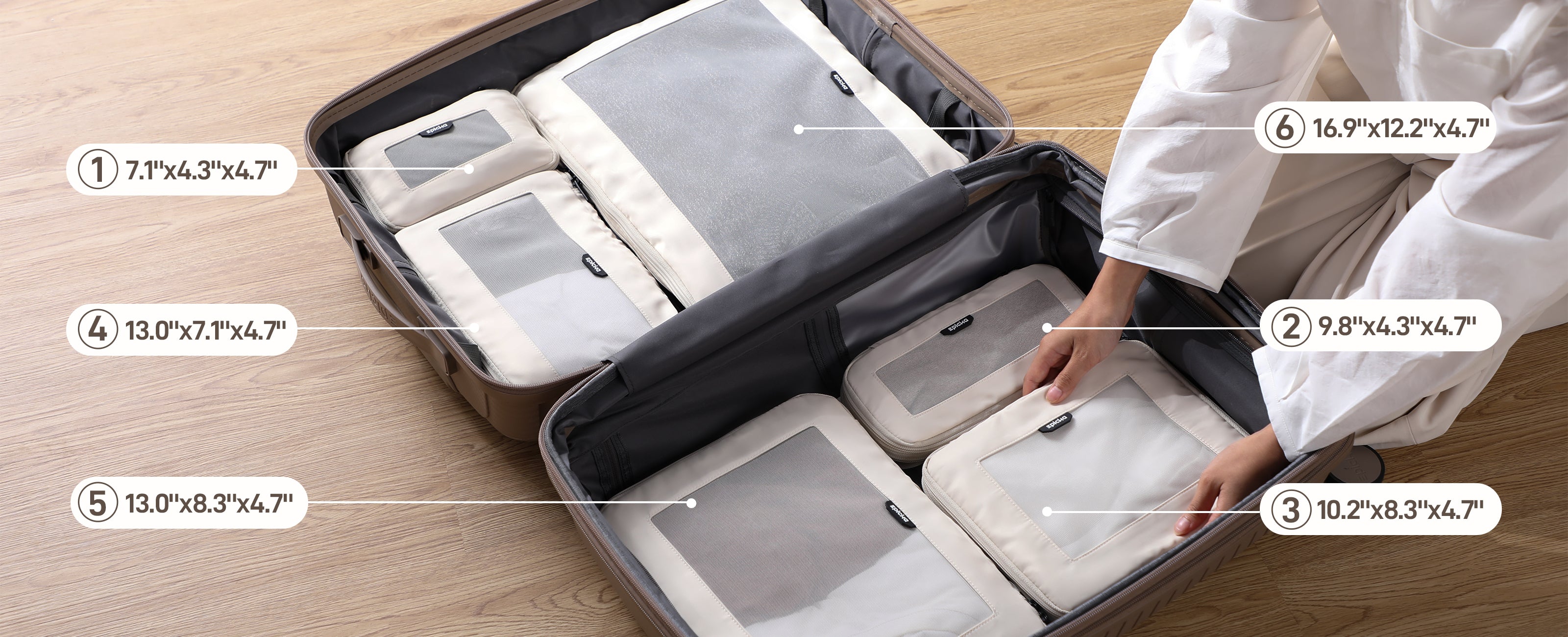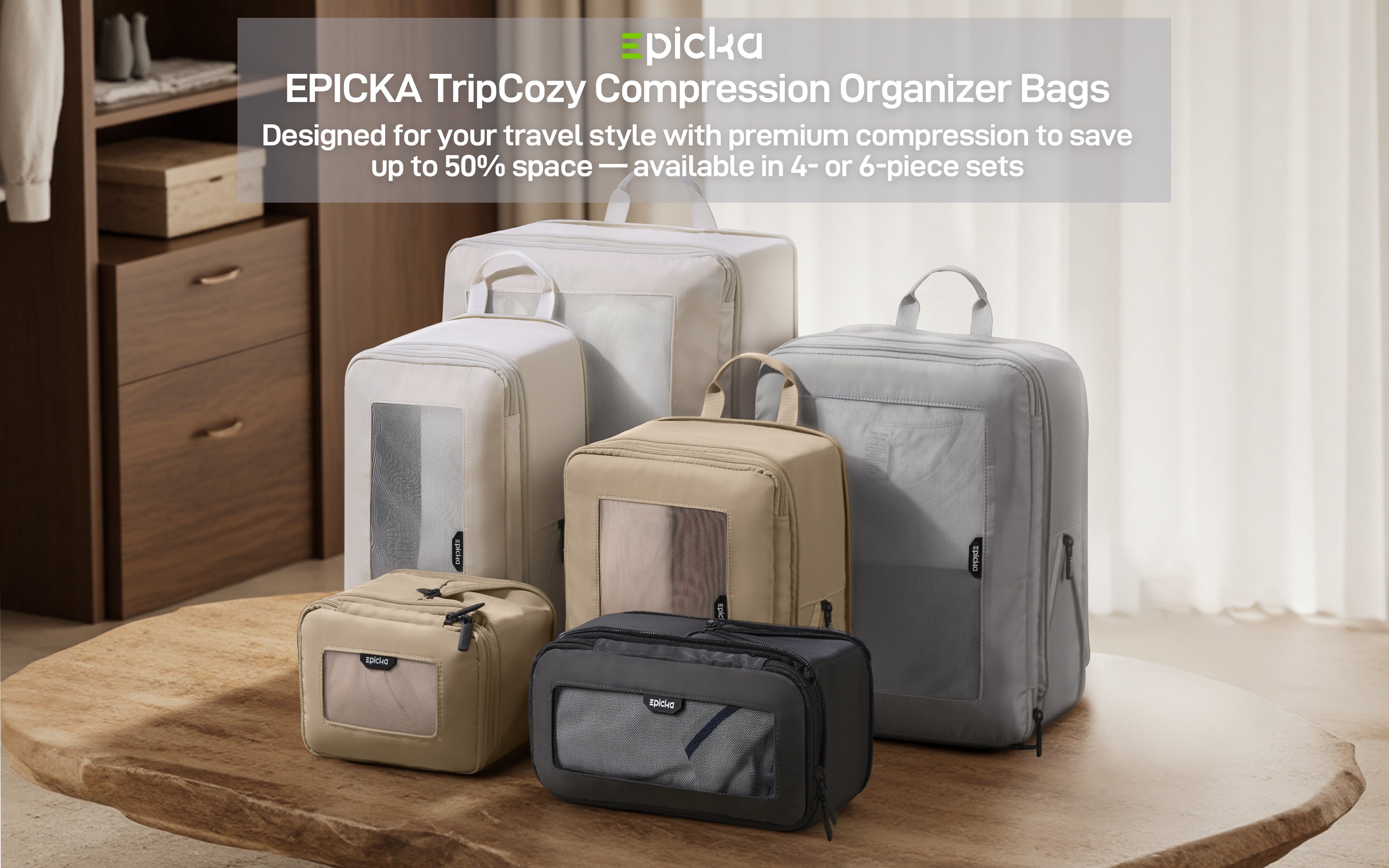 - Smart Sizes for All Trips: The 4-pack fits in a weekend carry-on; the 6-pack expands to hold bulkier items in 24" suitcases and above, enabling organized and easy unpacking.