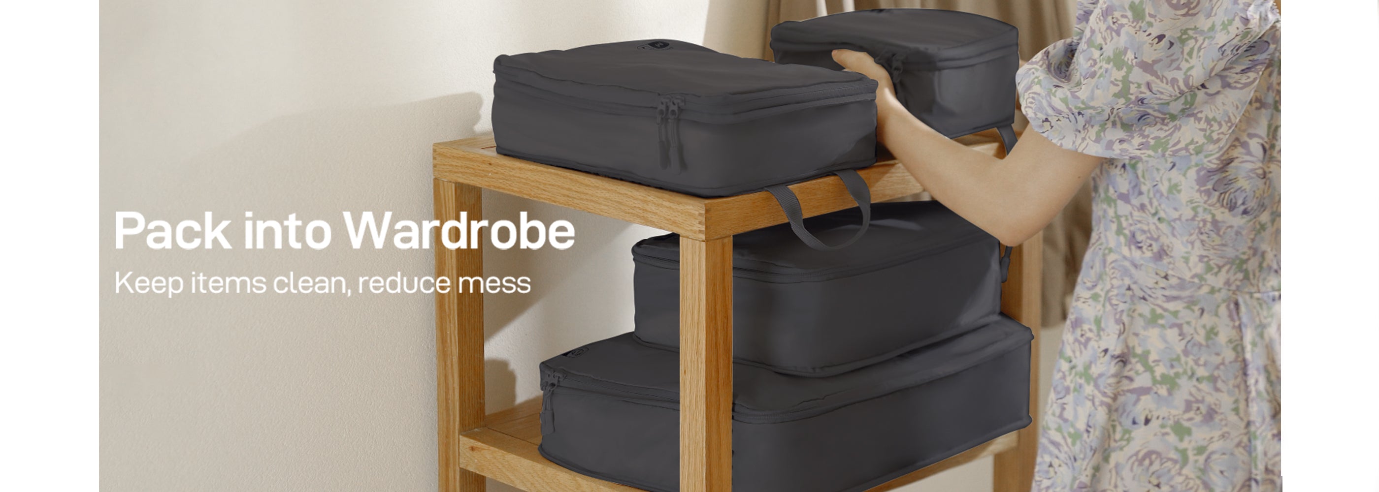 1 Small Cube, 1 Medium Cubes, 1 Large Cube, 1 Laundry Bag, 1 Shoe bag